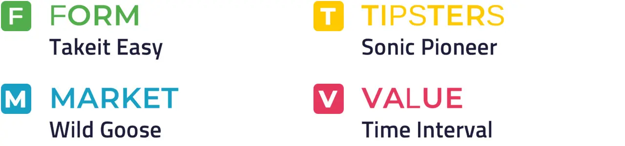 Individual Price Hint: Takeit Easy traded at 10% or less of Betfair SP and 50% or less of Betfair SP on 2 of its last 5 starts: Time Interval traded at 25% or less of Betfair SP and 50% or less of Betfair SP on 2 of its last 5 starts.